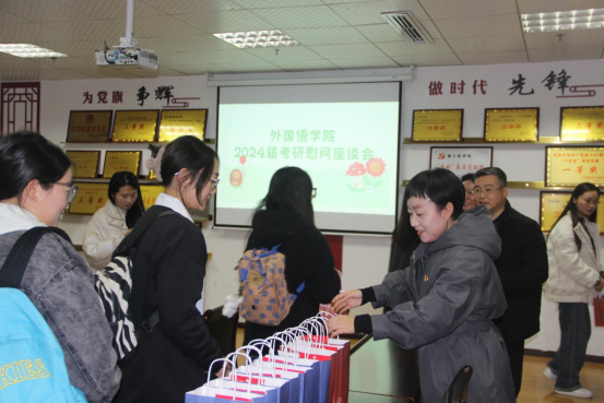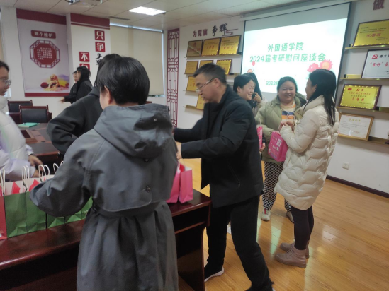 座谈会上,老师们对同学们坚持学习、克服困难、为梦想而不懈奋斗的精神表示充分肯定和高度赞赏,向备考员工表达了慰问,鼓励员工继续坚持、奋勇向前。谭占海与考研员工亲切交流,他叮嘱同学们,一是要保持良好的学习状态,按照既定的安排合理备考,不骄不躁,持续发力,做好最后一公里;二是要劳逸结合,不必刻意加码,保持身心健康,以最好的状态备战考试。王梅提醒同学们注重劳逸结合,提高学习效率,掌握复习技巧和方法,并表示学院将尽全力为大家的考研保驾护航。唐茜鼓励同学们只争朝夕,不负韶华,保持良好心态,注意饮食营养,保持身体健康。会后,学院领导为每一位考研员工分发考研“加油包”,为员工们送上学院的温暖,表达了殷切期望。